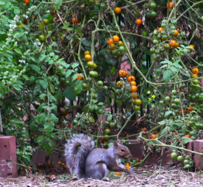Chú sóc thoải mái ăn cà chua do không còn người canh gác khu vườn. Khu vườn này từng là nơi diễn ra nhiều hoạt động ngoại khóa của các em học sinh