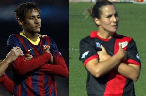 Cách ăn mừng bàn thắng khó hiểu của Neymar Neymar đã có rất nhiều những cái nhất trong trận đấu với Celtic đêm thứ Tư vừa qua. Hành động của tân binh Barca khá giống với pha ăn mừng của nữ cầu thủ đang chơi cho Rayo Vallecano.